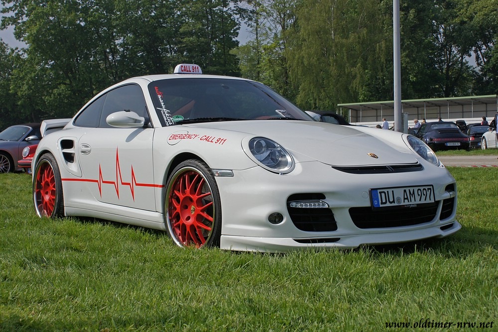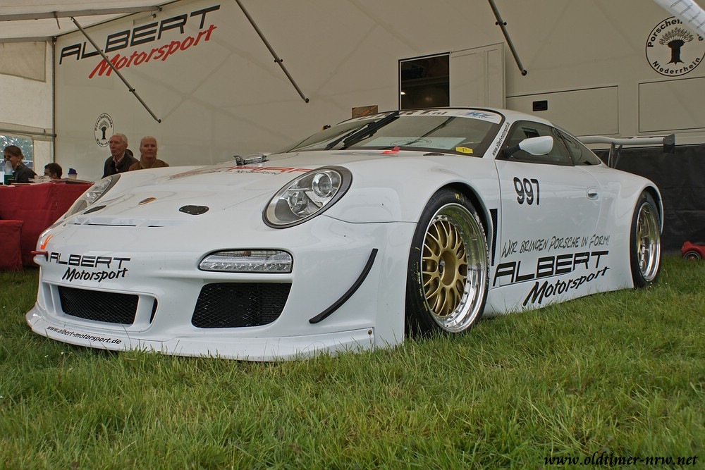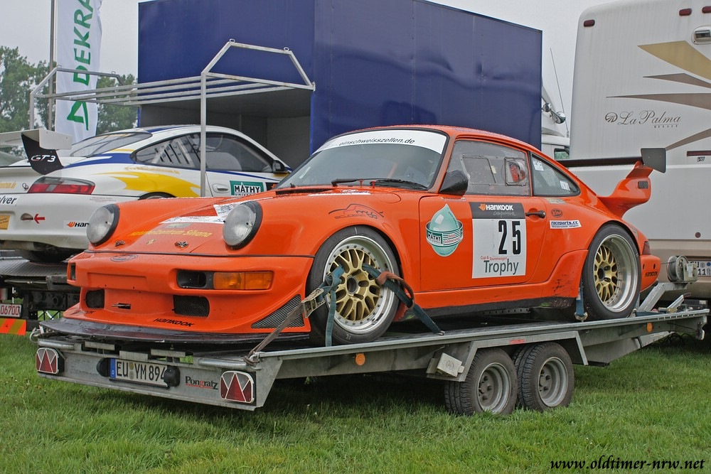 Zu sehen gab es einiges. Viele schöne 911er, Traktoren und einige Wettbewerbsfahrzeuge standen auf der Rundbahn und auf der Wiese in der Mitte. Was ich dieses Jahr allerdings etwas vermisst habe, waren die älteren Modelle ala 914er oder 356. Vielleicht wurden die Fahrer durch die düstere, aber glücklicherweise falsche Prognose der Wetterfrösche abgeschreckt?