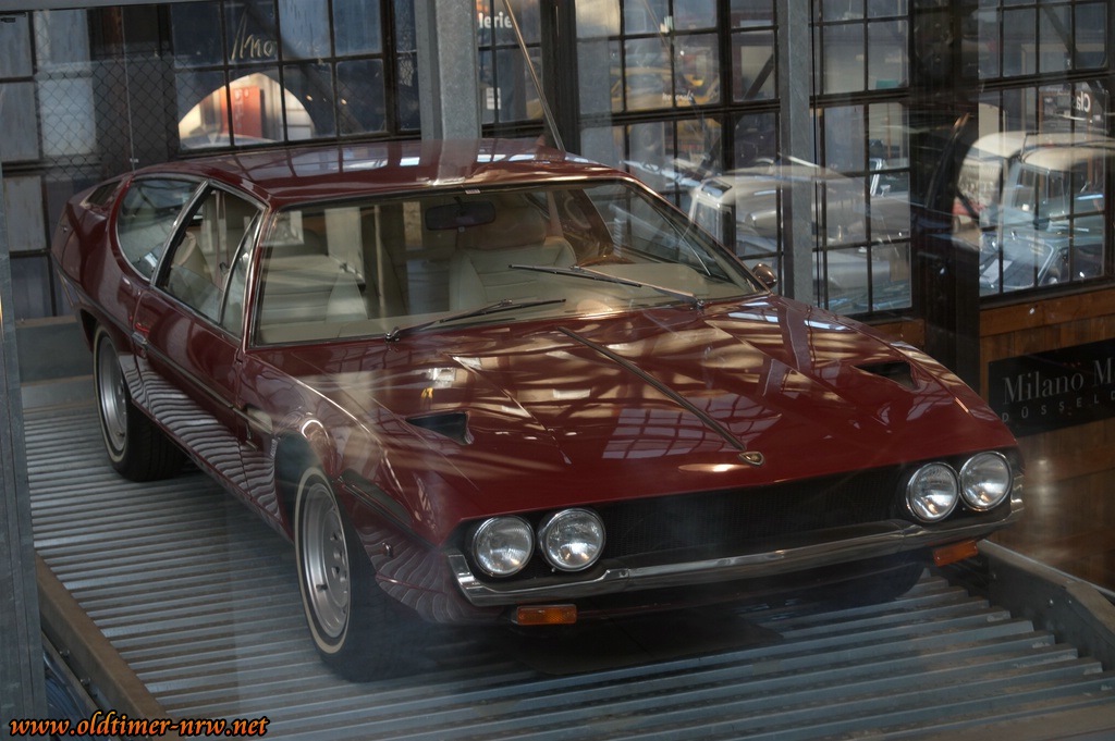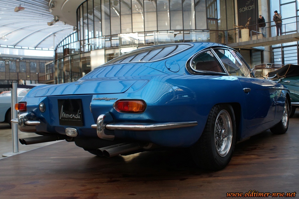 Wann hat man denn mal die Möglichkeit einem Lamborghini 400 GT 2+2 im unverbastelten Originalzustand Auge in Auge gegenüberzustehen? Bei solch wertvollen Fahrzeugen bewegt man sich schon ganz automatisch sehr viel vorsichtiger und bedächtiger, als man es sonst tut um der aufmerksamen Security keinen Grund zur Ermahnung zu geben.